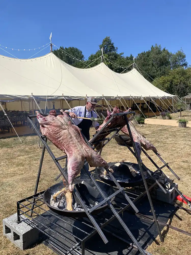 Hire Our British Built Asado BBQ equipment. Crafted from reclaimed materials, these Asado BBQ’s offer a unique and traditional open-fire cooking experience. Perfect for any event. Equipment hire for estates, venues, & brands.
